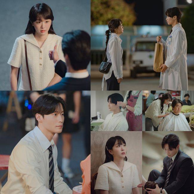 버스 안내양이었던 영례는 7년이 지나 미용실 스텝 디자이너로 일하고 있다. 그리고 재필(허남준)과 재필의 아버지 한기복(윤제문)의 머리는 늘 영례의 손을 거쳤다. 대학병원 인턴 의사가 된 재필은 당직이 끝나도 집에 가지 못할 만큼 바쁜 일정 속에서도, 오프 날이면 어김없이 영례를 찾았다. 며칠 만의 휴식인지조차 가물가물한 재필이 꼭 영례 앞에 앉는 이유, 그것만으로도 두 사람 사이는 충분히 의심스럽다. 미용실 직원들이 이런 두 사람을 보며 “남녀 사이에 친구가 어디 있냐”고 쑥떡이는 이유였다.