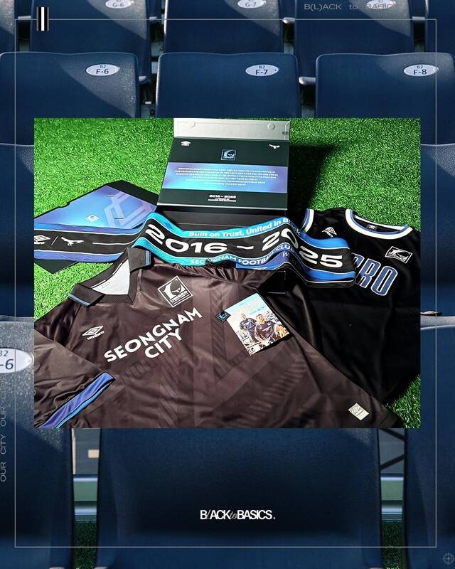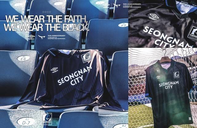 성남과 엄브로는 동행 10주년을 기념해 스페셜 유니폼과 리미티드 에디션 패키지를 공개했다. "We Wear The Faith, We Wear the Black (우리는 서로의 '믿음'을 입습니다. 우리는 변하지 않는 '블랙'을 입습니다)"라는 슬로건을 담았고, 스폰서십 이상의 '동반자'라는 의미를 더했다.