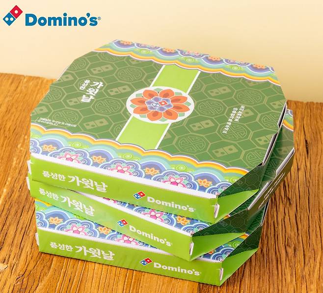 도미노피자가 한글날을 맞아 추석을 일컫는 옛 우리말인 '가윗날'이란 단어와 우리나라 전통 문양을 피자박스 겉면에 새겨 한국적인 미를 더했다고 9일 밝혔다.
