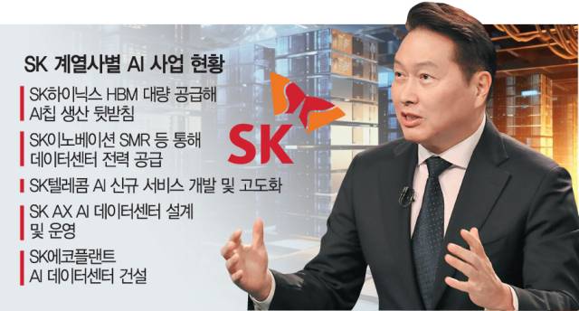 최 회장이 AI 혁명에 드라이브를 걸면서 SK는 고대역폭메모리(HBM) 등 AI 칩 공급부터 전력 확보 등 에너지 솔루션 부문, AI 데이터센터 설계 및 운영까지 AI 산업 전반에서 경쟁력을 강화하게 됐다. 실제로 SK하이닉스(000660)는 HBM 등 AI 산업 생태계를 뒷받침할 메모리 반도체에서 세계 시장을 주도하고 있고 SK이노베이션(096770)은 액화천연가스(LNG), 에너지저장장치(ESS)는 물론 소형모듈형원전(SMR) 기술을 두루 갖추며 AI의 에너지를 제공하고 있다.
