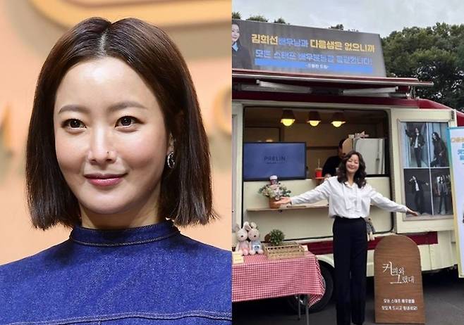 커피차에는 "김희선 배우님과 다음생은 없으니까"라는 문구가 적혀 있다.