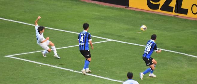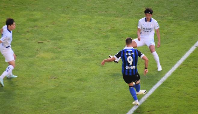 | ▲ 64분 4초, 인천 유나이티드 FC 스테판 무고사(등번호 9번)가 오른발 첫 골을 터뜨리는 순간 |