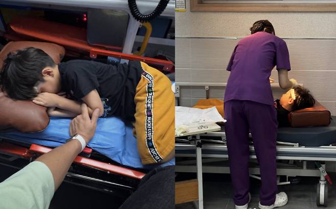 그는 "우리집 부모님, 처가댁 부모님 다 뵙고 남해로 잠시 놀러간 날! 바로 둘째가 열상을 입고 119구조대 불러서 삼천포 병원에서 응급 조치하고 서울로 와서 응급으로 봉합하고 아내는 운전하고 서울올라오면서 너무 떨고 긴장해서 몸살도 나고 수면마취 안하고 한시간동안 둘이 애를 붙잡고 애는 울고 아내도 울고 50바늘 봉합하고서야 일단 한 숨 돌립니다"라고 둘째 아들이 갑작스러운 사고로 50바늘을 꿰매는 수술을 한 사실을 전했다.
