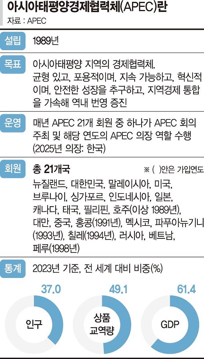 9일 외교 소식통에 따르면 이재명 대통령을 비롯한 일부 정상들은 APEC CEO 서밋에 직접 참여해 CEO들의 의견을 들을 예정이다. 이 대통령은 28일 APEC CEO 서밋 개막식에 참석해 글로벌 CEO들과 만나 소통하는 방안을 검토 중이다. APEC CEO 서밋은 정상회의 직전 민간 경제계의 목소리를 정상들에게 전달하는 공식 경로가 될 예정이다. 또한 APEC 기업인 자문위원회와 연계돼 정상회의 공동 선언문에도 반영될 수 있다.