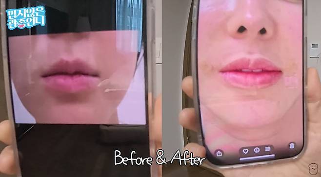 그는 "엄청 진하고 어색할까봐 안 한다고 했었는데 하길 잘했다는 생각이 든다"면서 "탈각이 진행되면 색깔이 다 빠진다고 하더라. 대만족"이라며 입술 문신 전과 후 비교 사진을 공개했다.