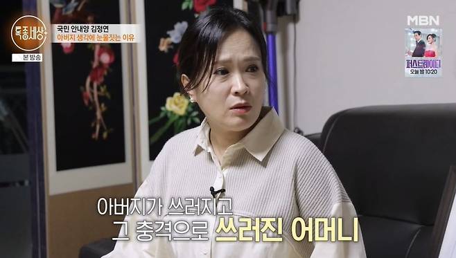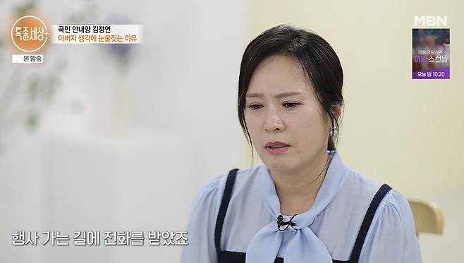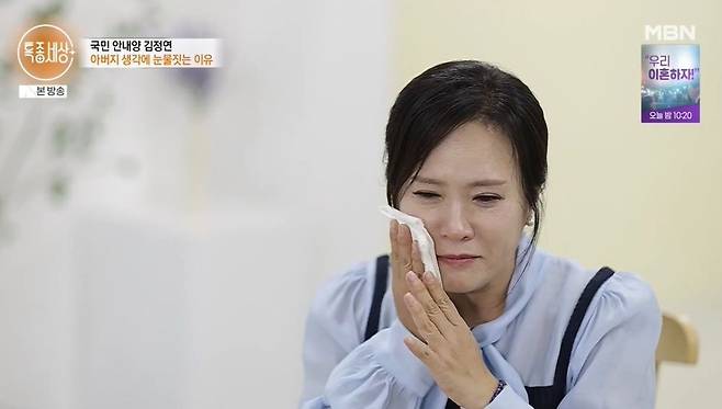 [TV리포트=남금주 기자] '국민 안내양' 김정연이 돌아가신 아버지를 떠올리며 눈물을 보였다.