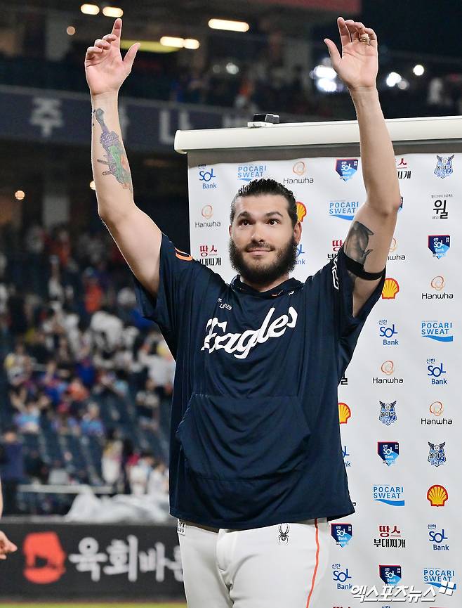 폰세는 후반기에도 자신의 존재감을 알렸다. 지난달 13일 대전 키움 히어로즈전까지 개막 17연승을 기록하며 리그 신기록을 달성했다. 다만 지난달 20일 수원 KT 위즈전에서 5이닝 4실점으로 시즌 첫 패전을 떠안으면서 무패 행진을 마감했다. 폰세의 시즌 최종 성적은 29경기 180⅔이닝 17승 1패 평균자책점 1.89다.