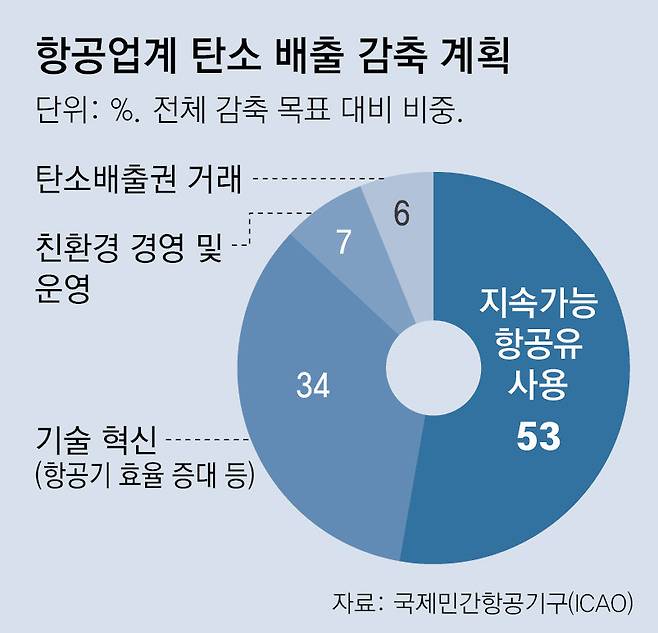 국제민간항공기구(ICAO)에 따르면 항공업계는 2050년까지 전체 탄소 배출 감축량의 53%를 SAF 사용으로 상쇄한다는 계획을 세운 상태다.