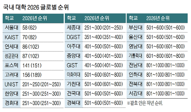 - [2026 THE 세계 대학 평가] 韓대학 약진…세계 100위에 4곳 진입은 처음 - 매일경제