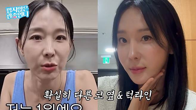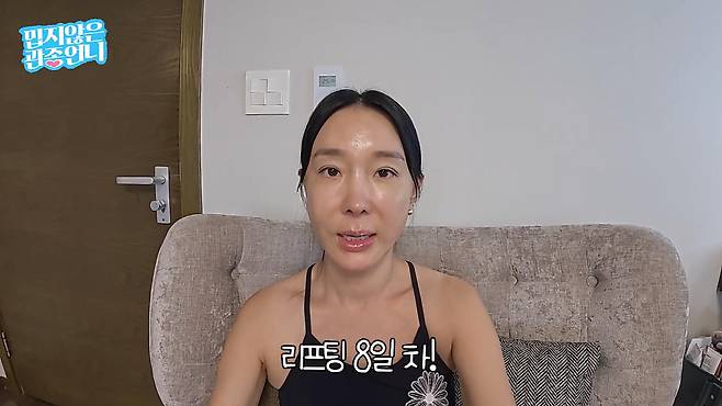 이지혜는 "실리프팅으로는 불가능하다는 말이 나올까 봐 걱정했다"며 "실이 20개나 들어간다고 하더라. 강력한 효과를 원했다"고 덧붙였다.
