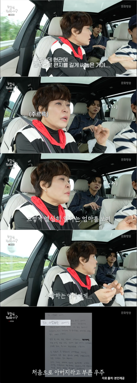 차량으로 이동 중이던 조혜련은 아들 우주 군이 곧 미국으로 훈련을 떠나 성경을 배우고, 이후 시드니에서 워킹에 나설 예정이라고 밝혔다. 아들의 결정을 지지하며 기도를 해줬다던 조혜련은, 집을 나서기 전 현관에 붙어 있던 아들의 길고 긴 손편지를 보고 울컥했음을 고백했다.