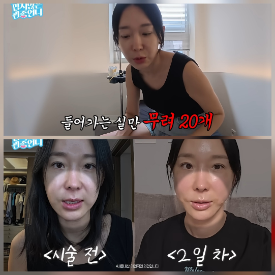 이지혜는 시술 후 입술 문신까지 추가로 받으며 “예전보다 훨씬 또렷하고 만족스럽다. 메이크업할 때 느낌이 다르다”고 만족감을 드러냈다.