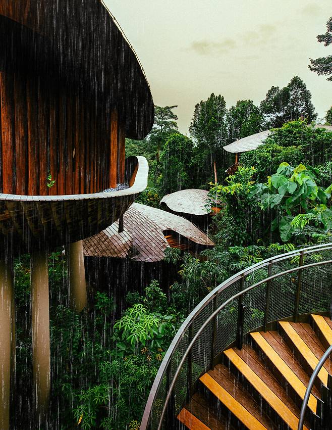 '만다이 레인포레스트 리조트 바이 반얀트리'는 싱가포르에 본사를 두고 있는 반얀 그룹이 싱가포르에서 처음으로 선보이는 호텔이다. '싱가포르 동물원, 나이트 사파리, 리버 원더스, 버드 파라다이스, 레인포레스트 와일드' 등 동식물에 관련된 어트랙션을 품은 '만다이 야생 보호구역(Mandai Wildlife Reserve)' 내 위치한다. 아무래도 동물 보호와 전시, 생태 보존과 소비가 뒤엉켜 있는 공간이기 때문에, 호텔에서 내세우는 콘셉트인 '바이오필리아(Biophilia, 생명에 대한 존중과 사랑)'에 대한 철학이 다소 역설적으로 느껴지기도 한다. 바로 이 모순 속에 싱가포르와 반얀트리가 추구하는 조화의 방향성이 녹아 있다.