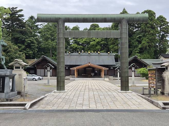 | ▲ 일본 이시카와현 가나자와시에 소재한 호국신사. 2000년대 일본 우익은 이곳에 일제의 침략전쟁 때 사망한 군인들을 기념하는 '대동아성전대비'를 세웠다. (사진=김남균 기자) |