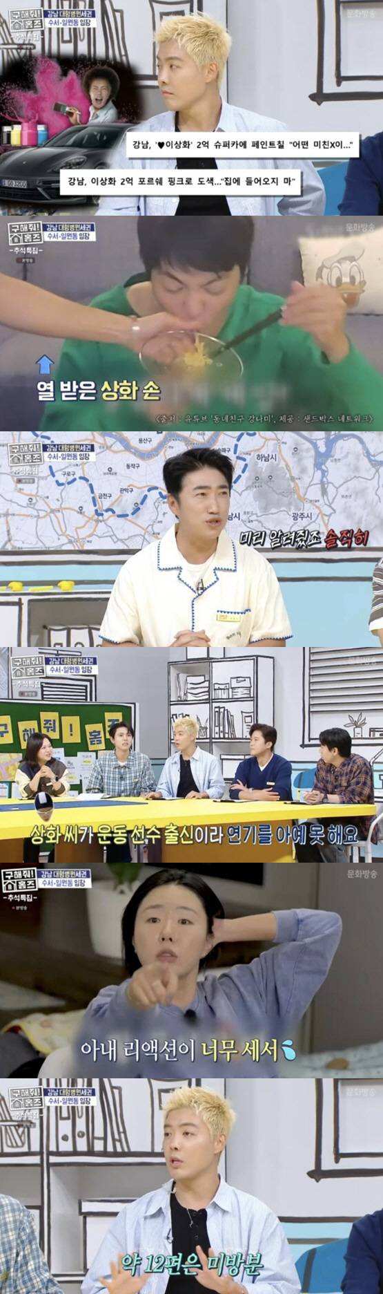 이날 강남은 구독자 약 125만 명의 채널을 운영하는 근황을 전했다. 장동민은 강남에게 "유튜브를 운영하고 있는데 (강남보다) 아내 이상화 지분이 높다"며 이상화의 인기를 언급했다. 이에 강남은 "이상화의 지분이 95% 정도"라며 인정했다.
