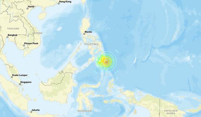 유럽지중해지진센터(EMSC)와 미국 지질조사국(USGS)은 현지 시간 오늘(10일) 오전 9시 43분쯤 민다나오섬 동쪽 해안에서 규모 7.4 지진이 발생했습니다.