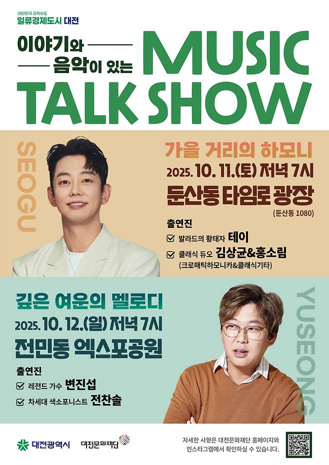 대전문화재단은 11~12일 '뮤직토크쇼' 공연을 선보인다고 10일 밝혔다.
