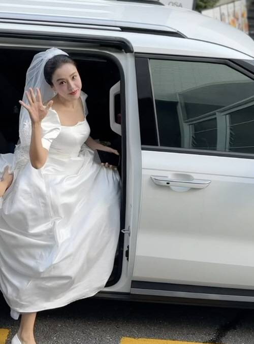 영상에서 박은혜는 순백의 웨딩드레스를 입고 카메라를 향해 환하게 웃으며 손을 흔들고 있다.