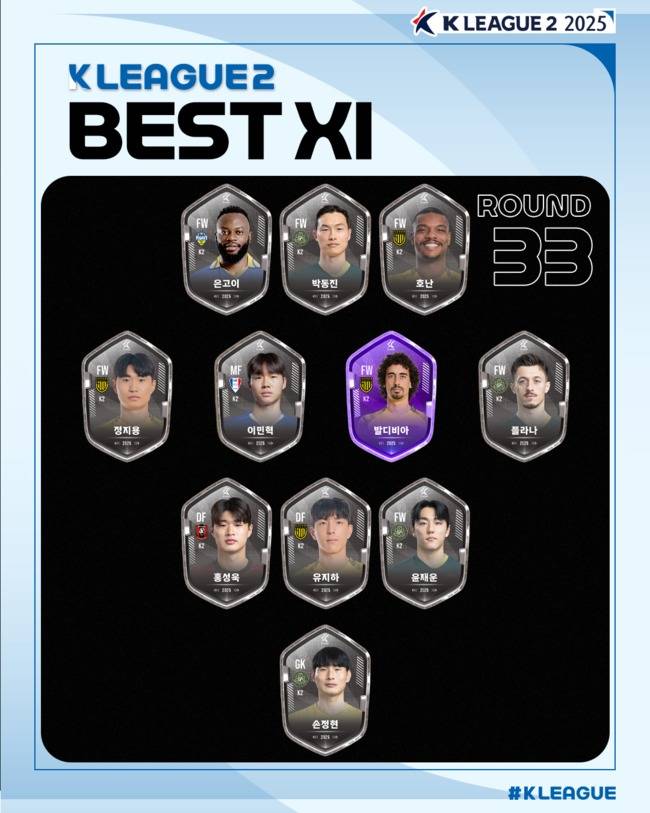 [하나은행 K리그2 2025 33R MVP, 베스트 팀/매치, 베스트11]