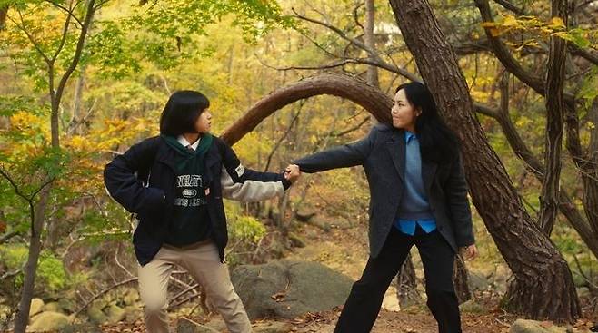 | ▲ <자매의 등산> 스틸컷. 등산하겠다는 은지(좌)와 말리는 미정(우). |