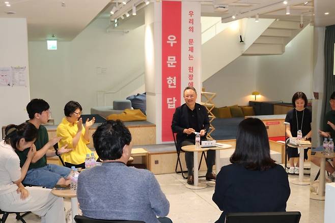 | ▲ 지난해 7월, 안상훈 의원이 경게선지능 청년과 그 가족을 대상으로 토크콘서트를 진행하고 있다. |