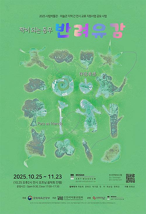 강화 더리미미술관(관장 유리)이 '2025년 사립 박물관‧미술관 지역 간 전시 교류 지원사업' 선정에 따라 충남 보령시에 위치한 모산조형미술관에서 오는 25일부터 내달 23일까지 교류 전시 '반려유감(伴侶有感) : 짝이 되는 동무(Pets as friends)'를 개최한다고 밝혔다.