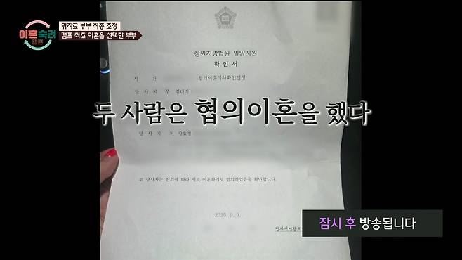 10월 9일 방송된 JTBC <이혼숙려캠프>에서는 15기 부부들의 최종 결말이 그려졌다.