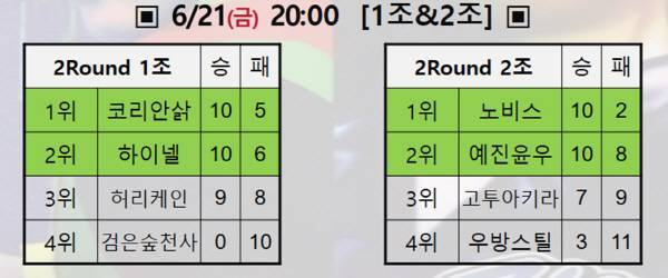 2라운드 1조에는 코리안삵님과 하이넬님이 3라운드에 진출하게 됩니다.