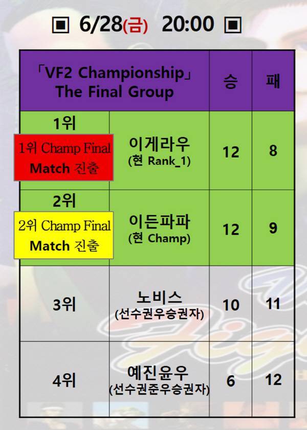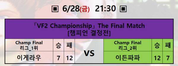 지난 5월 30일에 접수를 했고, 1부 VF2 선수권 대회, 2부 VF2 챔피언 결정전으로 나뉘어서 진행되었습니다.