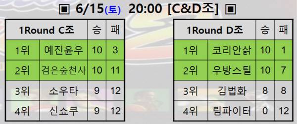 그리고 6월 15일에 1라운드 C조와 D조의 예선 경기도 진행되었습니다.