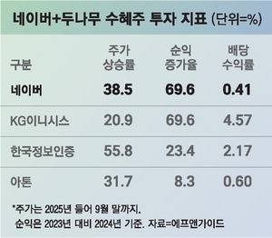 다만 이들은 중장기 수혜 예상주로 지금 당장 주가가 빛나진 않는다. 네이버와 두나무 협력 소식에 곧바로 반등한 곳은 한화투자증권과 우리기술투자다. 두나무는 네이버파이낸셜과의 지분 교환 후 기업가치를 높여 나스닥 등 미국 시장에 상장하려는 계획을 갖고 있다. 덩달아 두나무 지분을 보유한 기업들의 지분 가치는 급상승하게 된다. 아직까지 비상장사인 두나무의 지분 구조는 송치형 회장 25.5%, 카카오인베스트먼트 10.6%, 우리기술투자 7.2%, 한화투자증권 5.9% 등이다. 카카오인베스트먼트 역시 비상장사다.