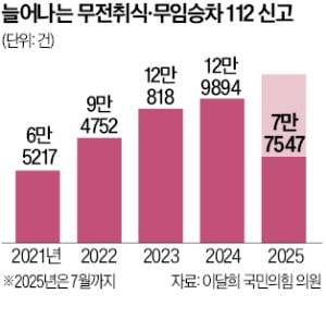 10일 이달희 국민의힘 의원이 경찰청에서 받은 자료에 따르면 무임승차·무전취식 관련 112 신고는 2021년 6만5217건에서 지난해 12만9894건으로 99.2% 증가했다. 올해 1~7월 기준으로는 7만7547건이 접수돼 이 같은 추세라면 지난해 수치를 넘어 역대 최대 기록을 경신할 가능성이 높다.