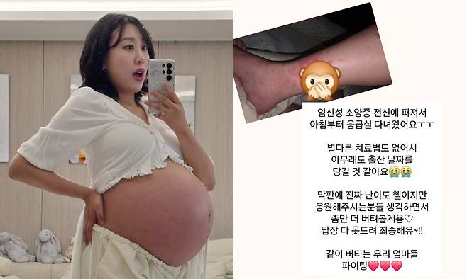 임라라는 10일 자신의 계정에 "임신성 소양증(가려움증) 전신에 퍼져서 아침부터 응급실 다녀왔다"는 말로 시작하는 글과 함께 사진을 업로드했다.