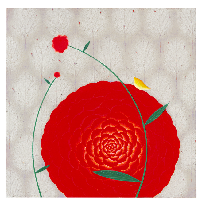 작품의 표면에는 수많은 시행착오와 인내의 흔적이 남아 있다. 가까이서 바라보면 색과 질감의 층이 살아 움직이며, 꽃과 나무 등 구상적 형상은 어느새 추상적 패턴으로 변주된다. 보는 각도와 빛의 변화에 따라 다른 표정을 드러내는 화면은, 작가가 견뎌낸 시간의 무게와 감정의 깊이를 고스란히 전한다.