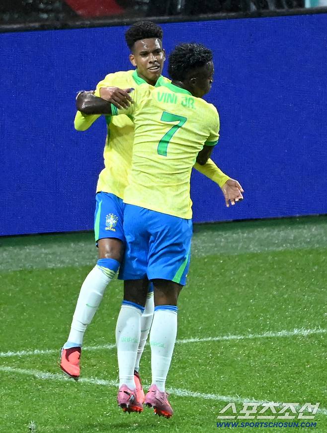 10일 서울월드컵경기장에서 열린 대한민국 축구대표팀과 브라질의 A매치 평가전, 브라질의 에스테반이 전반 선취골을 터뜨리고 있다. 상암=허상욱 기자wook@sportschosun.com/2025.10.10/