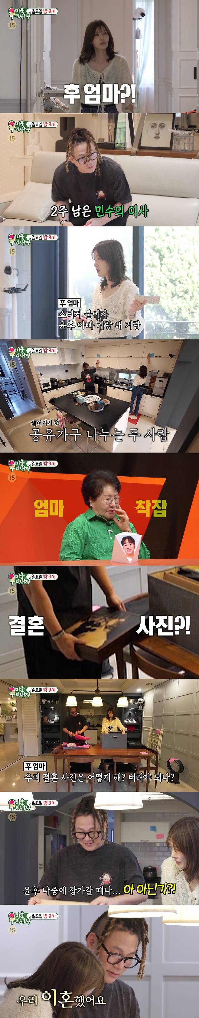 영상에는 이혼 후에도 집 매매 문제로 여전히 한집에 머물고 있는 윤민수와 전처가 함께 가구를 정리하는 장면이 담겼다.