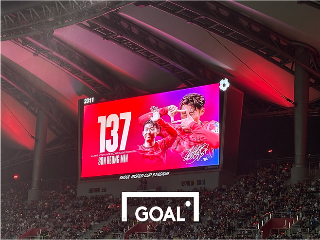 해당 LED 카드섹션에서는 '손흥민 137경기 최다 출전'이라는 문구가 송출됐다.