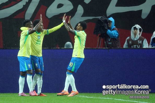 후반 들어 브라질의 맹폭이 시작됐다. 후반 2분 박스 안에서 김민재의 패스를 끊어낸 이스테방이 침착한 왼발 슛으로 세 번째 득점에 성공했다. 2분 뒤인 후반 4분에는 중원에서 백승호(버밍엄 시티 FC)의 볼을 빼앗은 뒤 곧장 앞으로 전개했고, 비니시우스의 아크 정면 패스에 이은 호드리구의 박스 안 오른발 슛이 골망을 흔들었다.