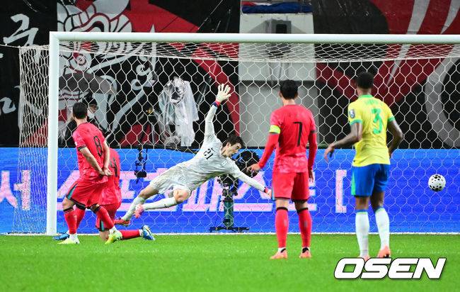 실제로 잠시 버티던 상황서 바로 브라질 선수들이 빈틈을 헤집기 시작했다.두들기던 브라질은 전반 17분, 브루노 기마랑이스의 침투 패스를 받은 이스테방이 박스 안에서 정확한 슈팅으로 조현우의 손끝을 넘어 골망을 흔들었다.