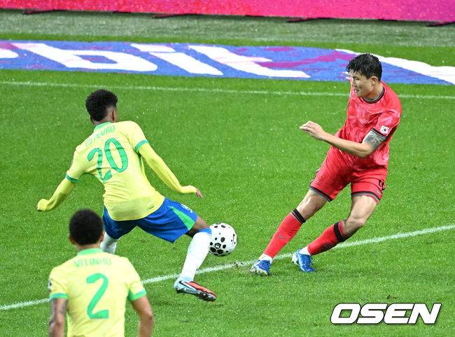 이날 세계적 명장 카를로 안첼로티 감독이 이끄는 브라질은 비니시우스 주니오르, 호드리구, 마테우스 쿠냐, 카세미루 등 최정예 멤버를 모두 출격시키면서 한 수 위의 전력을 제대로 보여줬다. 홍명보호는 상대의 뛰어난 개인기 앞에 준비한 스리백과 중원의 빈 틈이 공략당하면서 본선 무대를 앞두고 조직력 강화라는 또 하나의 숙제를 안게 됐다.