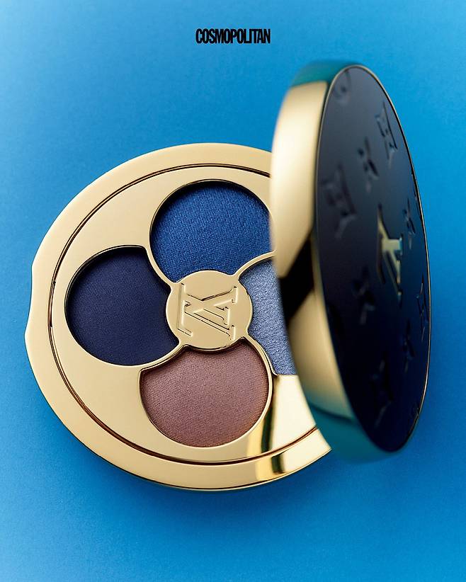 블루와 네이비, 아이시한 글리터까지 담아낸 다채로운 푸른 컬러 스펙트럼에 브라운을 더한 4구 섀도 팔레트. 한 번의 터치로 또렷하고 강렬한 아이 메이크업을 완성한다. LV 옴브르 아이섀도우 팔레트 950 스카이 이즈 더 리미트 36만원 La Beauté Louis Vuitton.