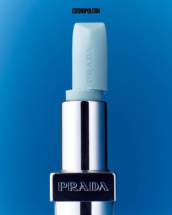 프라다의 헤리티지를 담은 메탈 로고가 돋보이는 립밤. 아이시한 하늘색 포뮬러가 입술에 닿는 순간 입술의 pH에 반응해 은은한 핑크빛으로 변한다. 호호바 오일이 더하는 촉촉한 보습과 은근한 광택 덕분에 민낯에 발라도 자연스럽다. 프라다 블러싱 케어 립밤 #U001 아스트랄 핑크 6만원 Prada Beauty.