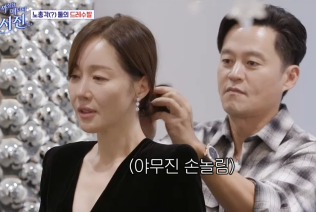 이어 엄지원은 “머리 묶을 줄 아나”며 질문, 이서진이 직접 머리를 묶어줬고, 마치 멜로드라마 한 장면을 보는 듯한 투샷이 눈길을 끌었다. 엄지원은 “머리 잘 묶네 묶어봤네”라고 말했다. 이서진은 “나도 장발로 머리 길러봤다”며 사극시절 머리를 묶어봤다고 해명했다.