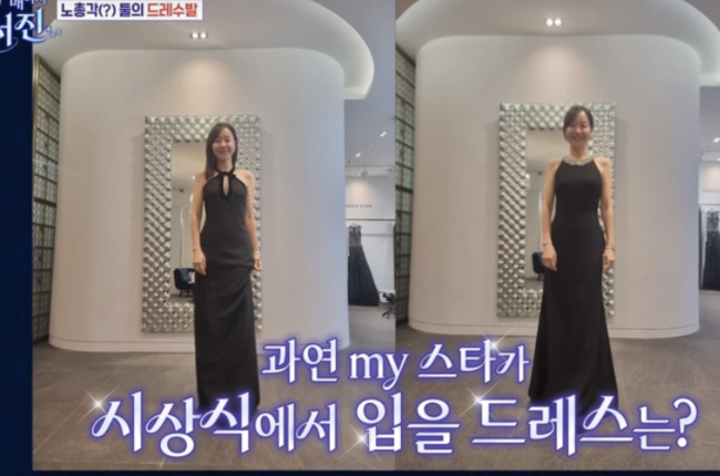 화려한 장식의 드레스를 발견, 두 사람은 “드레스 매장 처음이다”며 난감해했다. 하지만 시상자로 나선 엄지원은“심플하고 세련된 드레스가 필요하다”며 추천해달라고 했고, 두 사람은 생애 첫 드레스 셀렉에 신선한 반응을 선보였다