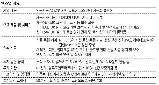 또, 골프장을 떠나 버린 2030세대를 다시 불러들일 수 있도록 엔터테인먼트 요소를 집어넣은 AI 캐디 서비스 ‘버디’ 개발도 마쳤다. 앞으로는 벙커 정리 로봇, 수질 정화 로봇, 잡초 제거 로봇 등으로 제품 포트폴리오를 확장할 계획이다.