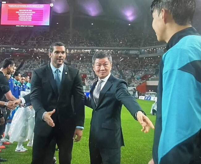 좋지 않은 분위기로 끝난 경기. 눈길을 끈 장면이 있었다. 경기 시작 전, 정몽규 회장과 홍명보 감독을 향한 관중들의 야유였다. 경기 시작 전, 장내에서 내빈 소개가 시작됐다. 정몽규 회장을 비롯해 최휘영 문화체육관광부 장관, 유승민 대한체육회 회장 등이 경기장을 찾았다. 정몽규 회장을 소개할 차례, 관중들은 일제히 “우~” 야유를 보냈다.