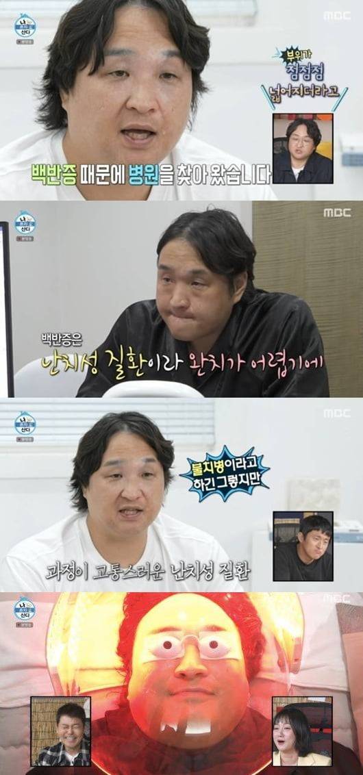 또 구성환이 "백반증 분위가 건조해진다"고 하자 의사는 "면역 반응 때문에 색소 세포가 파괴돼서 하얗게 된다. 피부가 안 좋아질 수밖에 없다"고 설명했다.