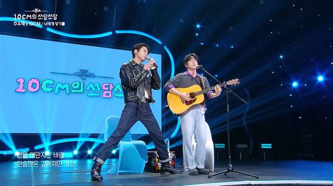 ‘음악에 진심인 남자’ 주우재는 십센치를 향해 “이렇게 염세적인 진행자는 없다”, “긴장도가 많이 떨어지셨다”며 저격 멘트로 ‘찐친 케미’를 선보였다. 십센치는 역주행을 일으킨 주우재의 ‘너에게 닿기를’ 커버에 감사함을 표했고 주우재는 “770만 조회수를 챙겼다. 저도 수혜를 받았다”고 화답했다. 이어 두 사람은 ‘너에게 닿기를’ 듀엣 무대를 꾸몄고 187cm의 장신 주우재는 십센치를 위해 ‘매너 다리’를 장착해 특별히 보는 재미를 더했다.