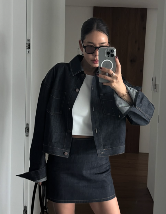 영상 속 김준희는 슈트를 착용하는 과정을 보여주며 시크하고 세련된 매력을 발산한다.