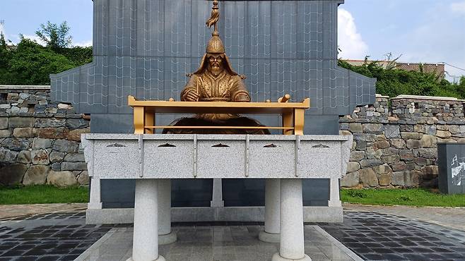 | ▲ 보성 이순신공원. 장계를 쓰는 이순신 동상과 당시 보성에서의 수군 재건 행적을 보여준다. |